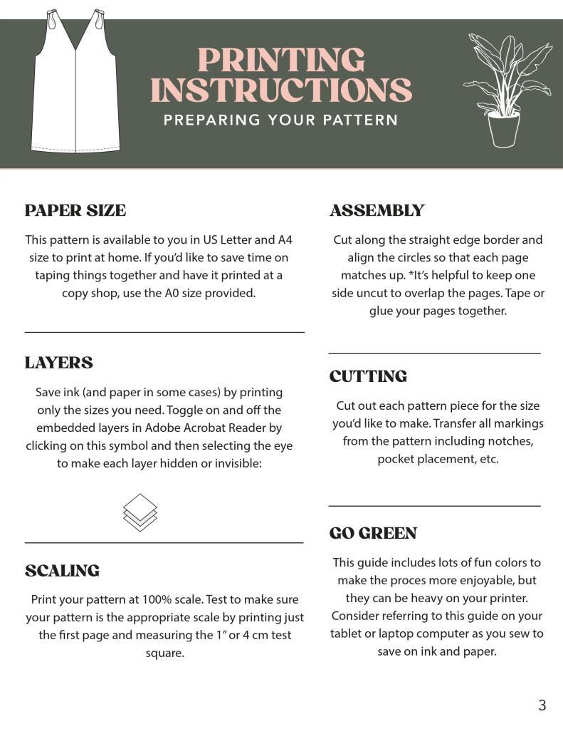 Below is a collection of my patterning and design work that was developed for at-home sewers. Each printable pattern was accompanied by a PDF guide with step-by-step instructions.
